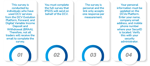 On Wednesday, September 3, IPSOS will send an email asking you to complete the DCV service quality survey and enter a drawing for a surprise prize at the end of each survey.